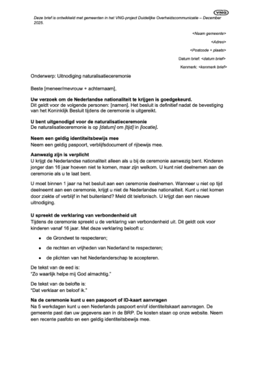 Brief uitnodiging naturalisatieceremonie