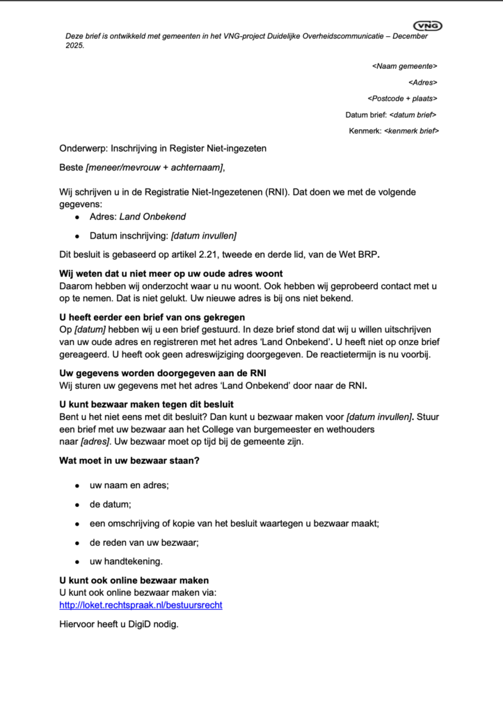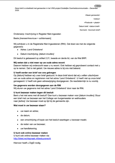 Brief Beschikking inschrijving Register Niet-Ingezetenen (RNI)